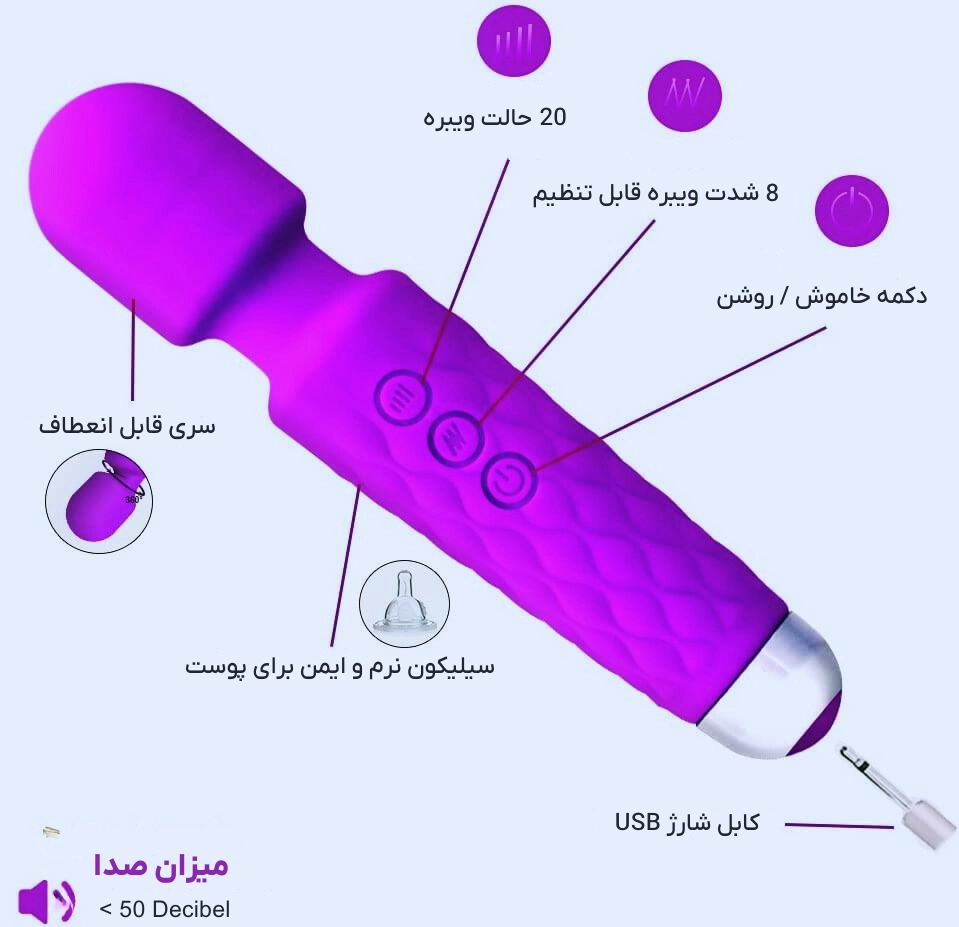 ویبراتور میکروفونی مجیک وند | ماساژوری حرفهای با کارایی چندمنظورهویبراتور میکروفونی مجیک وند یکی از حرفهایترین و محبوبترین ماساژورهای موجود در بازار است که با طراحی ارگونومیک، موتور قدرتمند و جنس سیلیکون یکپارچه و ضد حساسیت، تجربهای متفاوت از ماساژ و آرامش را برای شما فراهم میکند. این محصول علاوه بر کاربرد اصلی خود در ماساژ شانه، گردن و کمر، میتواند به عنوان یک ماساژور جنسی باکیفیت نیز مورد استفاده قرار گیرد و به بهبود روابط زناشویی کمک کند. ویژگیهای کلیدی ویبراتور میکروفونی مجیک وند